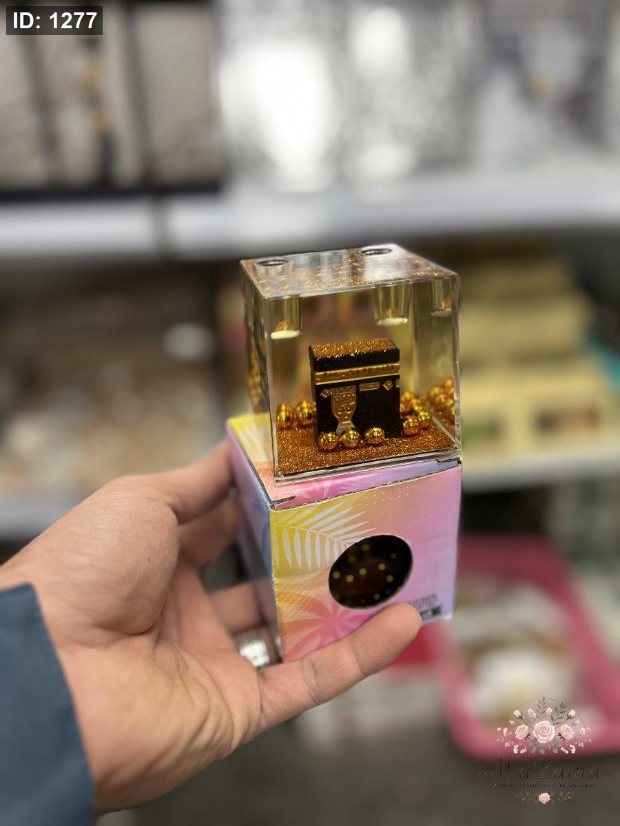 بلورة بالشكل المكعب بداخلها مجسم الكعبة مع برق ذهبي / هدايا معتمرين